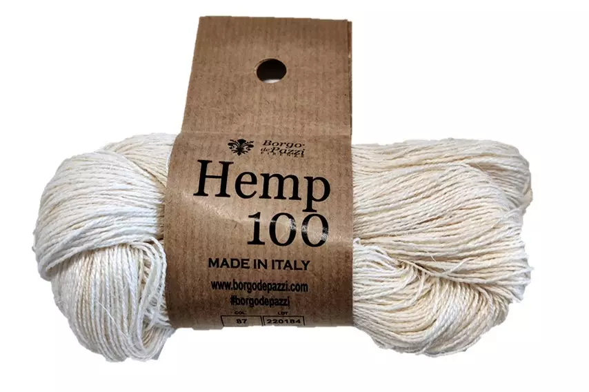 Borgo de Pazzi HEMP 100 on 100% hamppu. Puikot 2-2,5 tai käsialan mukaan, tiheys 34 s x 47 krs = 10 x 10 cm. Pesu 40 asteessa. 50g - 250 m.