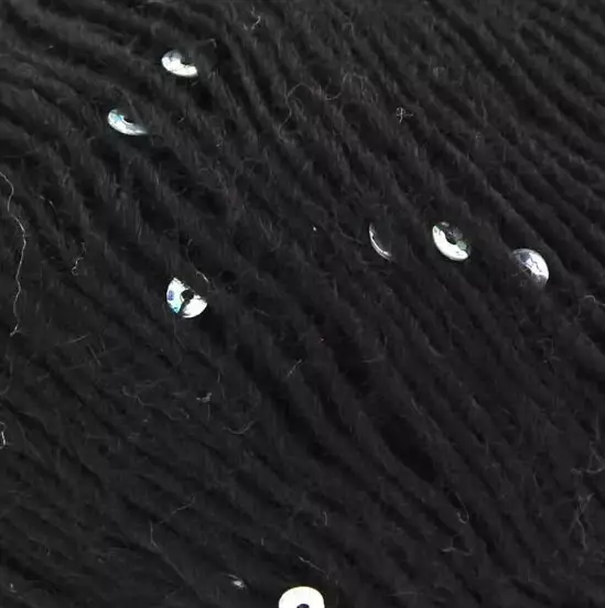 31% Villa, 4% pehmeä paljetti. Kerän koko 50 g - 175 m. Suositeltu puikkokoko 4.00 mm. 22s x 28 krs = 10 x 10 cm.
