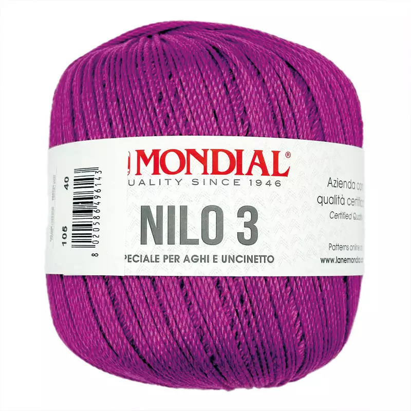 Mondial Nilo 3 on klassinen 100% Egyptiläistä puuvillaa, langassa on kierre vasemmalle, mikä antaa sille helmiäismäisen ulkonäön ja tekee siitä pehmeän