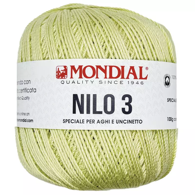 Mondial Nilo 3 on klassinen 100% Egyptiläistä puuvillaa, langassa on kierre vasemmalle, mikä antaa sille helmiäismäisen ulkonäön ja tekee siitä pehmeän