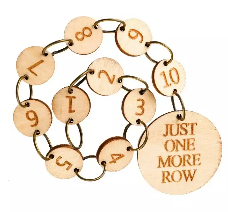 Jokaisesta neulomastasi kerroksesta siirrä yksi rengas eteenpäin koristetta kohti, niin tiedät kuinka monta riviä on jäljellä ennen seuraavaa esim.