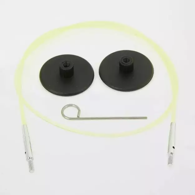 KnitPron ruostumattomasta teräksestä valmistetut vaihtokaapelit, jotka on päällystetty nailonilla. Jokaisen johdon mukana toimitetaan päätykappaleet