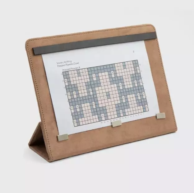 Keinonahkainen ohjeenpidike on kätevä tehtäessä tarkkaa ja vaativaa rivi riviltä luettavaa ohjetta. Mukana tulevilla magneeteilla (3kpl) ja magneetti