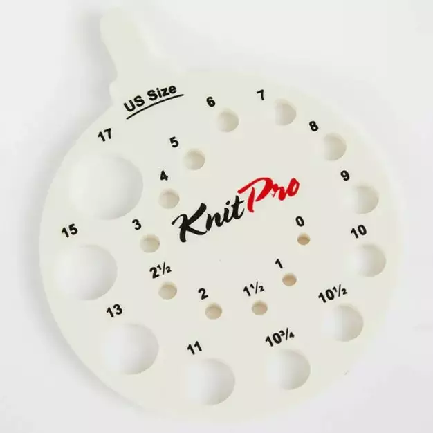 KnitPron muovisella pyöreällä puikkomittarilla voit tarkistaa puikkojen ja virkkuukoukkujen koon. Väri valkoinen.