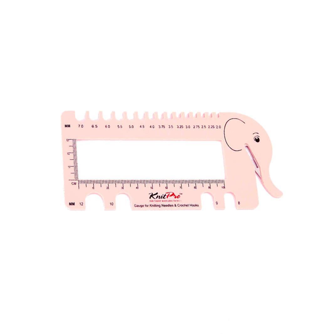 KnitPron muovisella puikkomittari & langankatkaisin työkalulla voit tarkistaa puikkojen ja virkkuukoukkujen koon sekä katkaista langan. Puikkomittarissa on myös mitta-ateikko senttimetreinä. Väri vaaleanpunainen.