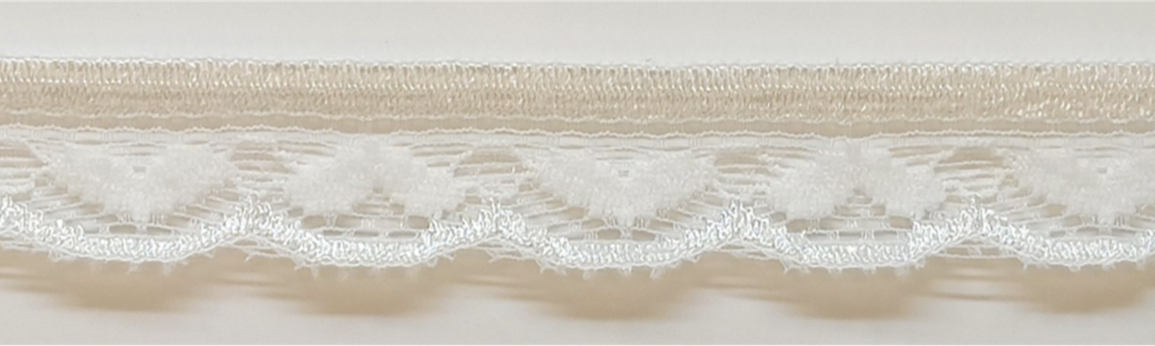 Laadukas elastinen reunapitsi. Lev. 20mm. Väri off white.