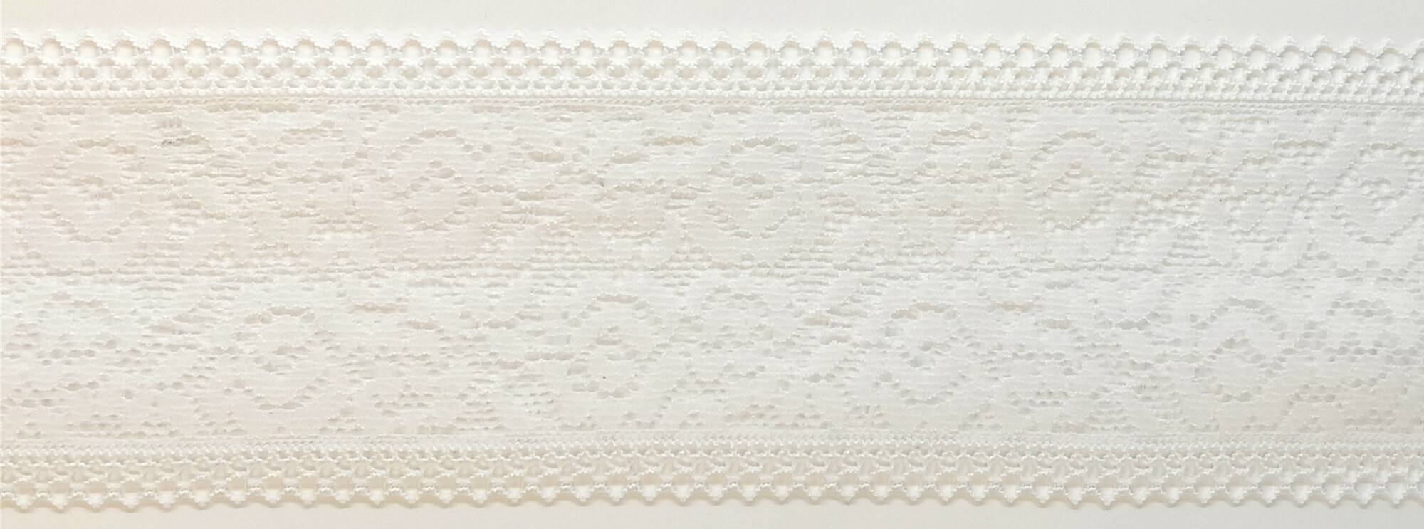 Laadukas leveä elastinen välipitsi. Käyttö esim. alusasuihin. Polyamidi/elastaani. Lev. 70mm. Väri valkoinen.