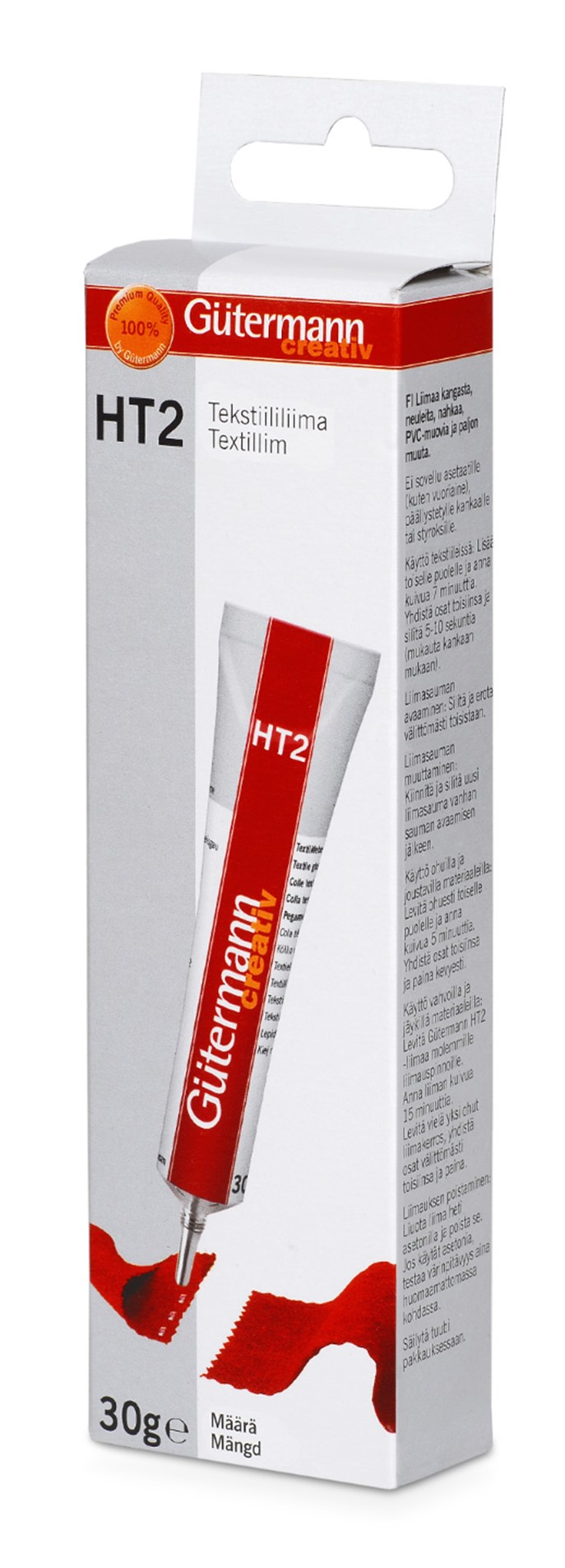 Gütermann HT2 liima on monikäyttöinen tekstiililiima joka liimaa kangasta, neuleita, nahkaa, PVC-muovia ja paljon muuta. 30g. Etyyliasetaatti, Butanoni.