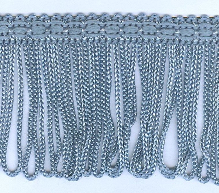 Laadukas hapsusisustusnauha esim. koristenauhaksi lampunvarjostimeen. Lev. 50mm. Väri harmaansininen.