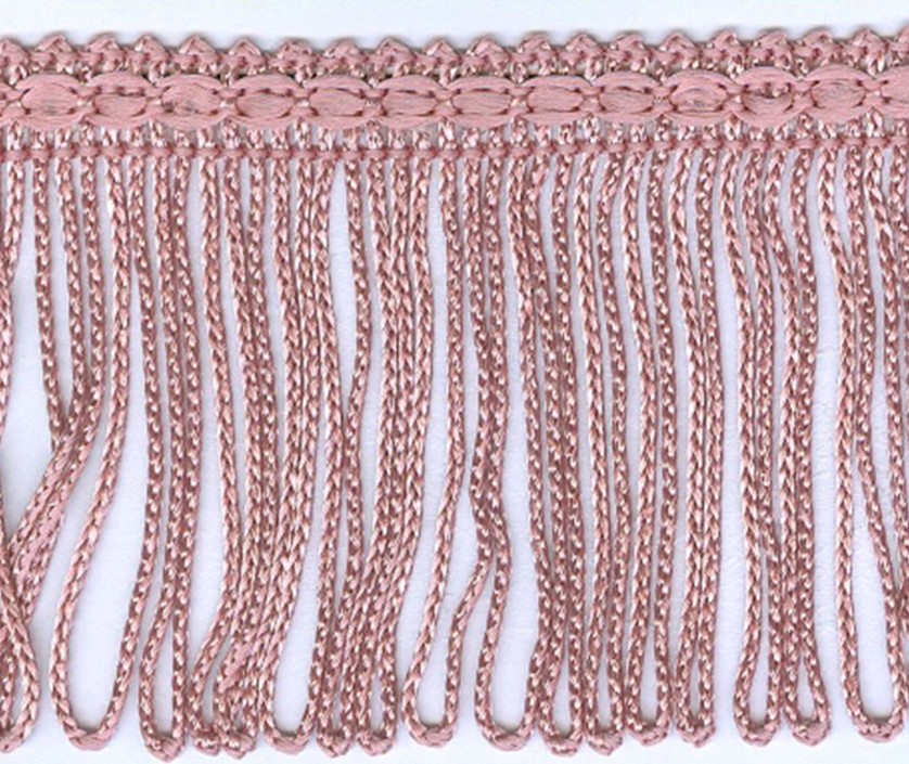 Laadukas hapsusisustusnauha esim. koristenauhaksi lampunvarjostimeen. Lev. 50mm. Väri vanha rosa.