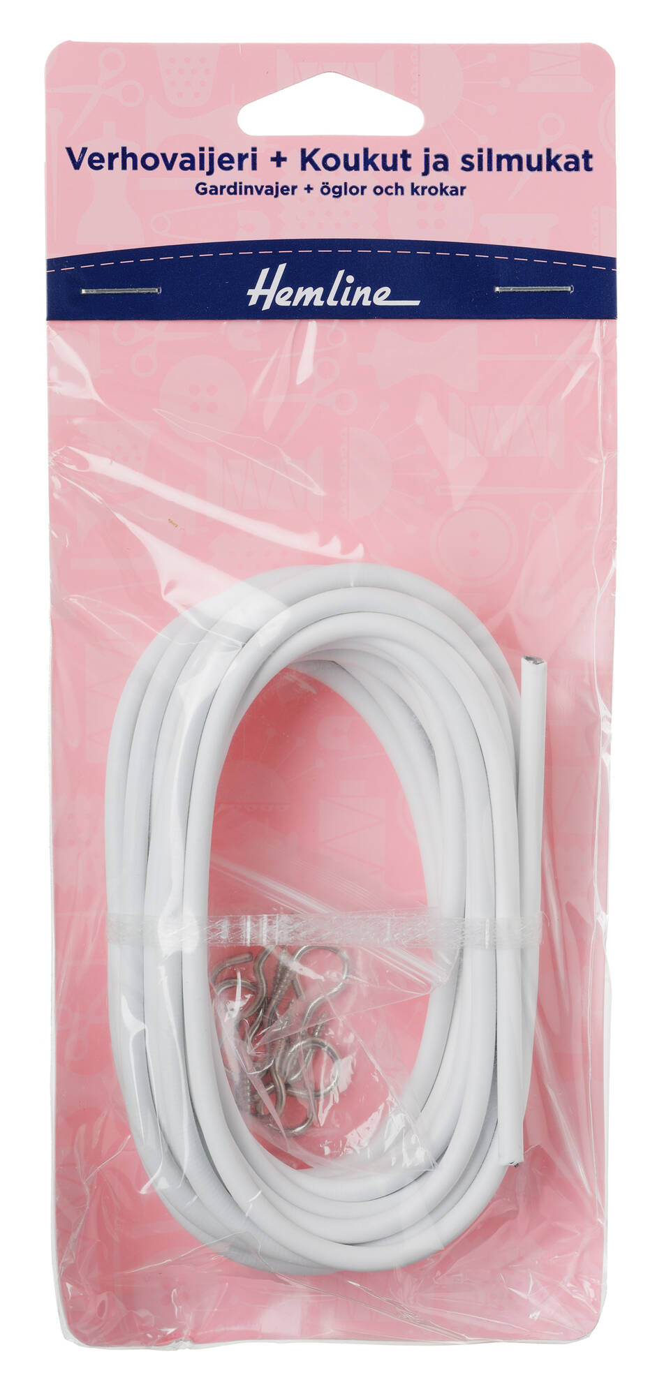 HEMLINE 4M x 4MM VERHOVAIJERI, 4KPL KOUKUT, 4KPL SILMUKKAA