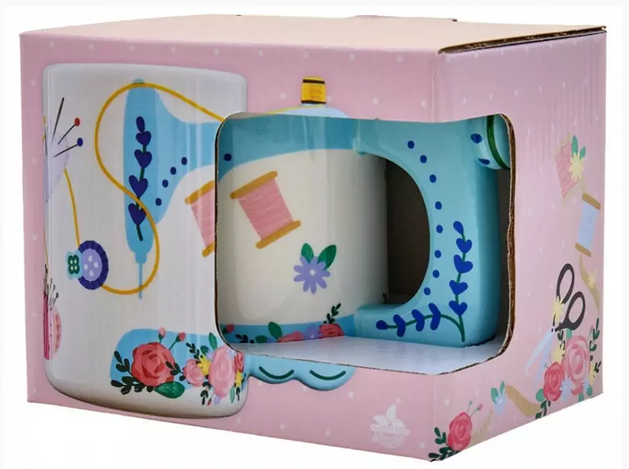 Laadukas keraaminen muki, joka on valmistettu laadukkaasta keramiikasta. Mukin kahvassa ompelukoneen muoto. Mukin vetoisuus on 400