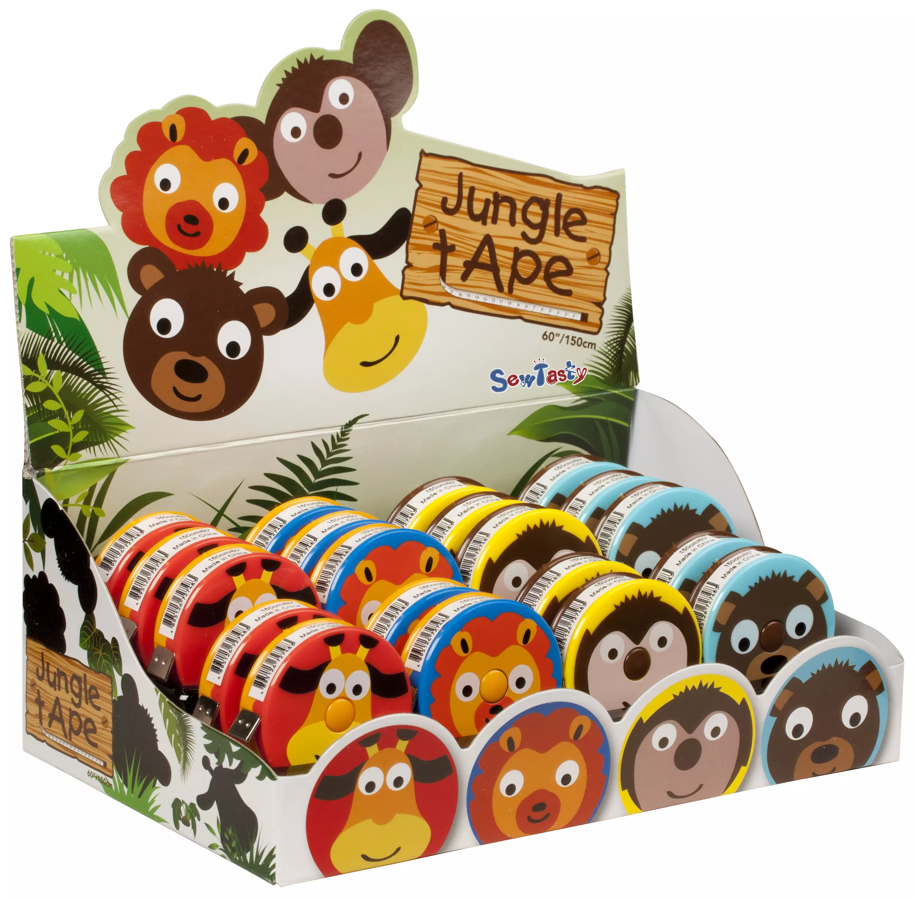Rullamittanauha ZOO3. Leijona, Kirahvi, Karhu ja Apina. Sisäänkelautuva mittanauha (150 cm). Toisella puolella tuumakoko, toisella puolella metrinen.