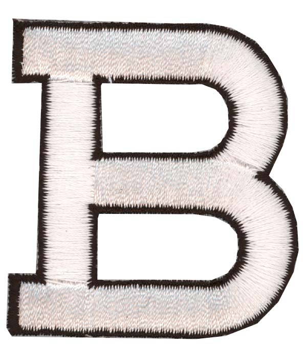 Laadukas silitettävä brodeerattu Aakkosmerkki. Kiinnitetään silittämällä, voidaan myös ommella. Merkin korkeus n. 55mm. Väri valkoinen mustat reunat.