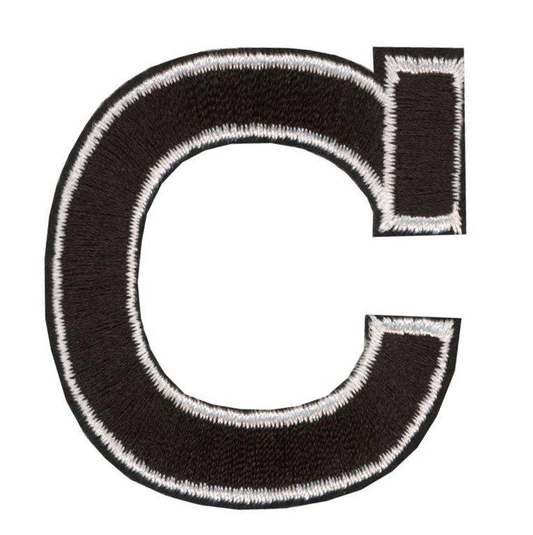 Laadukas silitettävä brodeerattu Aakkosmerkki. Kiinnitetään silittämällä, voidaan myös ommella. Merkin korkeus n. 55mm. Väri musta valkoiset reunat.