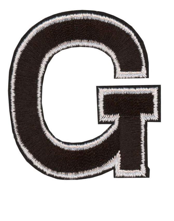 Laadukas silitettävä brodeerattu Aakkosmerkki. Kiinnitetään silittämällä, voidaan myös ommella. Merkin korkeus n. 55mm. Väri musta valkoiset reunat.