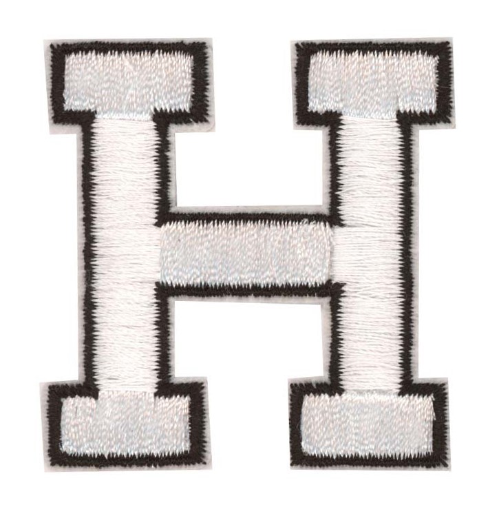 Laadukas silitettävä brodeerattu Aakkosmerkki. Kiinnitetään silittämällä, voidaan myös ommella. Merkin korkeus n. 55mm. Väri valkoinen mustat reunat.