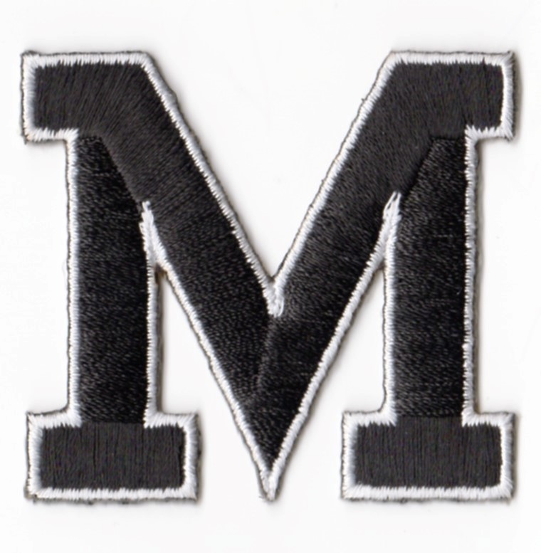 Laadukas silitettävä brodeerattu Aakkosmerkki. Kiinnitetään silittämällä, voidaan myös ommella. Merkin korkeus n. 55mm. Väri musta valkoiset reunat.