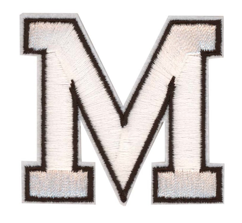 Laadukas silitettävä brodeerattu Aakkosmerkki. Kiinnitetään silittämällä, voidaan myös ommella. Merkin korkeus n. 55mm. Väri valkoinen mustat reunat.