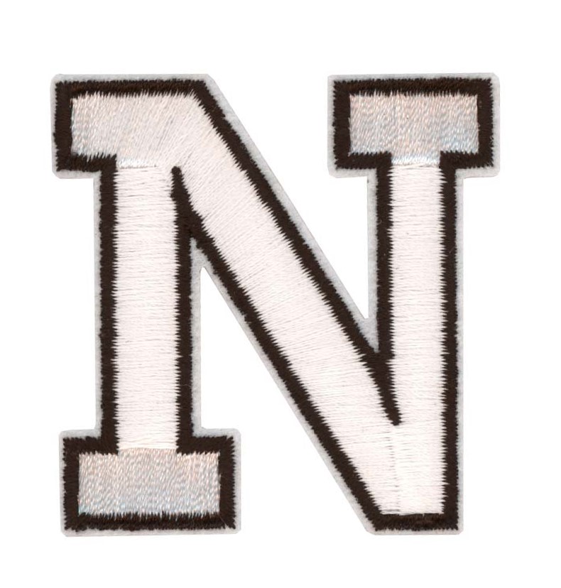 Laadukas silitettävä brodeerattu Aakkosmerkki. Kiinnitetään silittämällä, voidaan myös ommella. Merkin korkeus n. 55mm. Väri valkoinen mustat reunat.