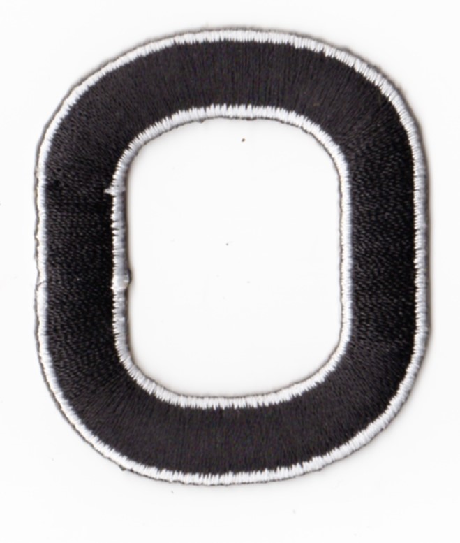 Laadukas silitettävä brodeerattu Aakkosmerkki. Kiinnitetään silittämällä, voidaan myös ommella. Merkin korkeus n. 55mm. Väri musta valkoiset reunat.