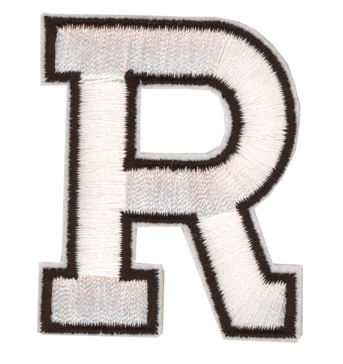 Laadukas silitettävä brodeerattu Aakkosmerkki. Kiinnitetään silittämällä, voidaan myös ommella. Merkin korkeus n. 55mm. Väri valkoinen mustat reunat.