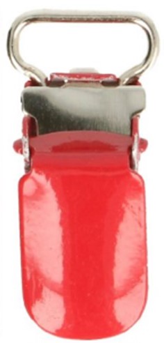 Laadukas värillinen metalliklipsi askarteluun, käsitöihin ja esim. tuttinauhoihin. Klipsin koko 25 x 10mm. Väri punainen.