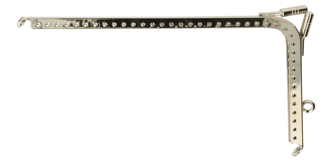 Laadukas metallinen kukkaronkehys kulmasta avattava mekanismi. Kiinnitys ompelemalla. Koko 16x9,5cm. Väri hopea.