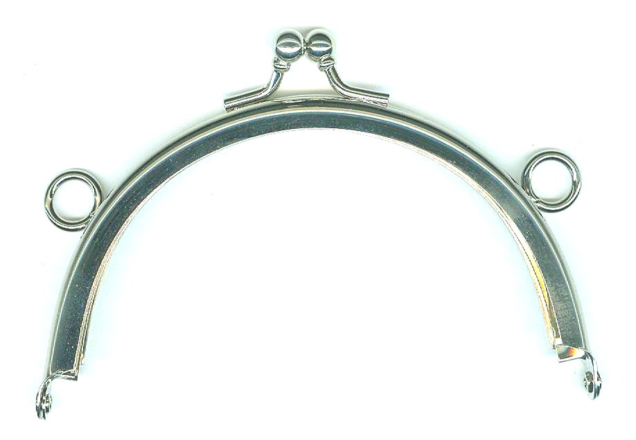 Laadukas metallinen kukkaronkehys olkainketju lenkeillä. Kiinnitys liimaamalla. Kaareva muoto. Leveys 10,5cm. Väri hopea.