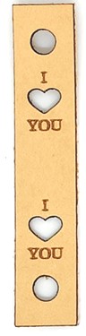 Nahkamerkki "nasta" kiinnityksellä. Nahka on laadukasta parkkinahkaa. Teksti "i love you" . Koko 11mm x 62mm. Väri luonnonvärinen.
