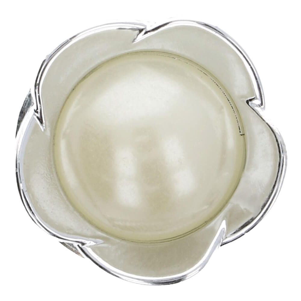 Kukanmuotoinen muovinappi jossa helmisydän.