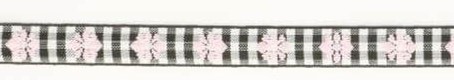 Laadukas kudottu nauha. Ruutupohjalla brodeerattu kukka. Lev. 12mm.