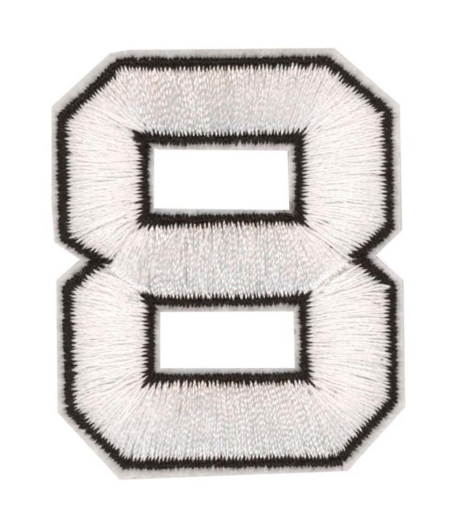 Laadukas silitettävä brodeerattu Numeromerkki. Kiinnitetään silittämällä, voidaan myös ommella. Merkin korkeus n. 55mm. Väri valkoinen mustat reunat.