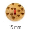 käytetty parhaita raaka-aineita ja luovaa osaamista. Napin halkaisija 15 mm. Napissa sydän kuvio.