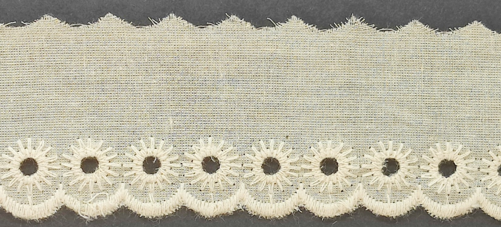 Laadukas puuvilla reuna brodyyri. Lev. 40mm. Väri ecru.