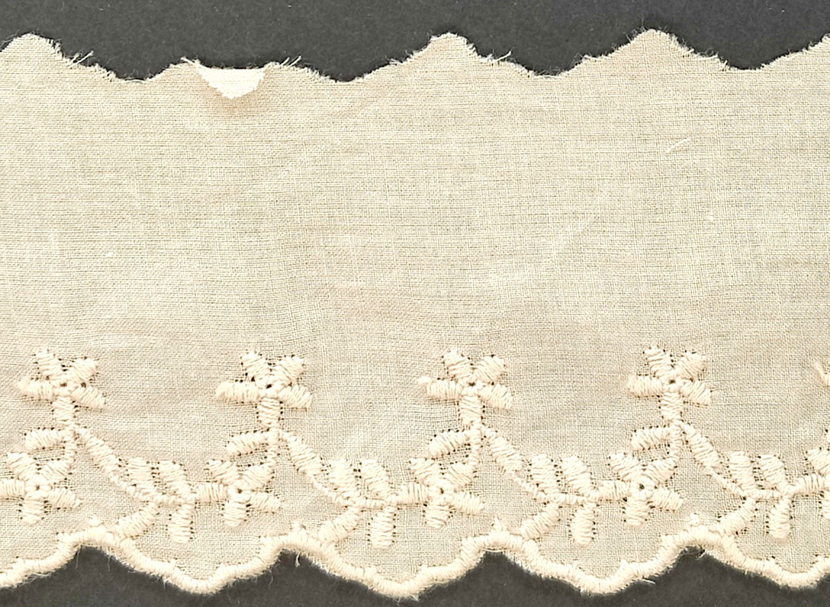 Laadukas leveä puuvilla reuna brodyyri. Lev. 68mm. Väri ecru.