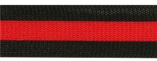 Laadukas joustava neulos raitanauha. 1 raita. Lev. 25mm. Väri musta/punainen.