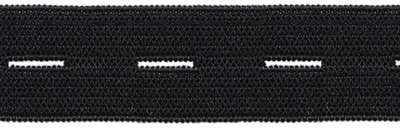 Laadukas ja joustava napinläpikuminauha. Sopii käytettäväksi housujen ja hameiden vyötärönauhassa, erityisesti myös lasten vaatetuksessa. Lev. 18mm. Väri musta.