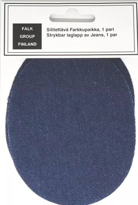 Laadukas silitettävä Farkkupaikka. Ovaalin muotoinen farkkupaikka. Soveltuu korjaukseen, paikkaamiseen ja tuunaukseen.Paikan koko 9,5x12cm.