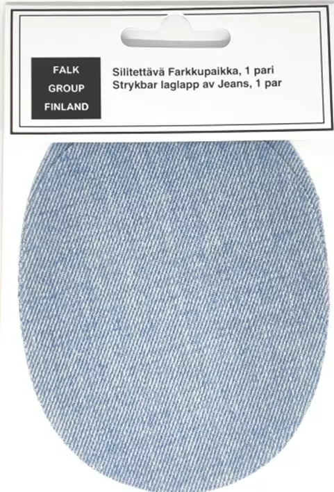 Laadukas silitettävä Farkkupaikka. Ovaalin muotoinen farkkupaikka. Soveltuu korjaukseen, paikkaamiseen ja tuunaukseen.Paikan koko 9,5x12cm.