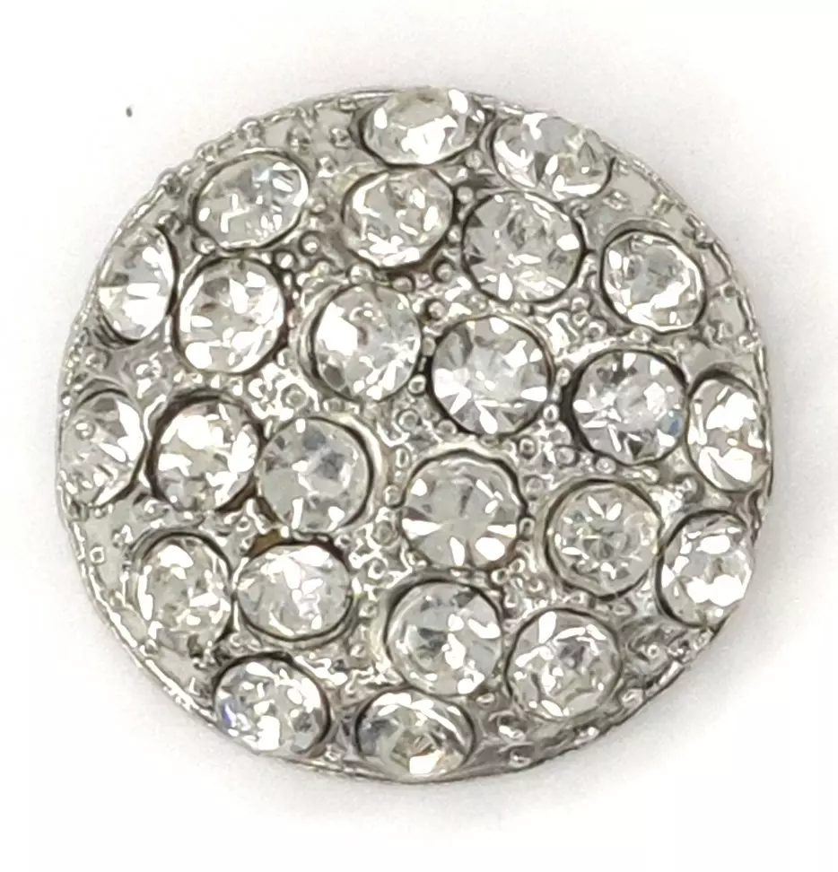 Kannallinen Strassinappi kirkkaat strassikivet. Nikkelivapaa. Halkaisija 21 mm.