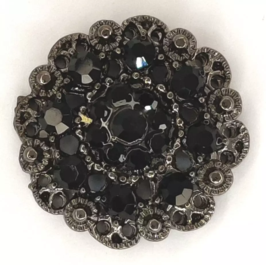 Kannallinen Strassinappi mustilla strasseilla Nikkelivapaa. Halkaisija 20 mm.