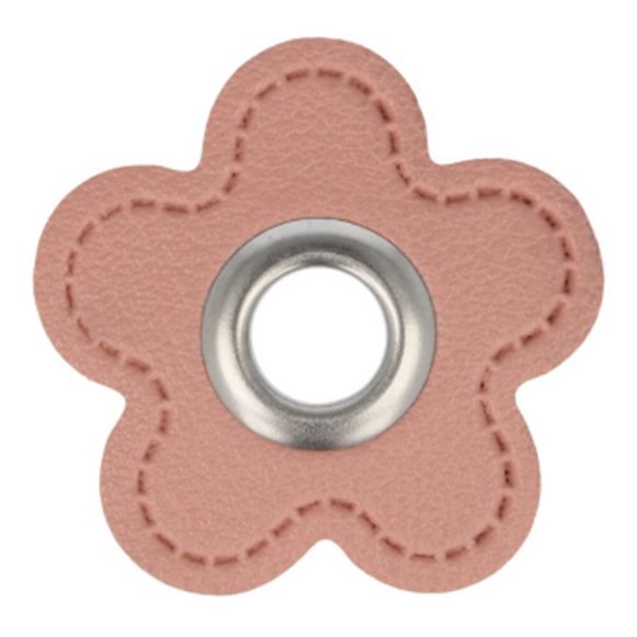 Laadukas vahvistettu purjerengas keinonahalla. Ommeltava. Keinonahka kukanmuotoinen. Purjerengas Ø 8mm.